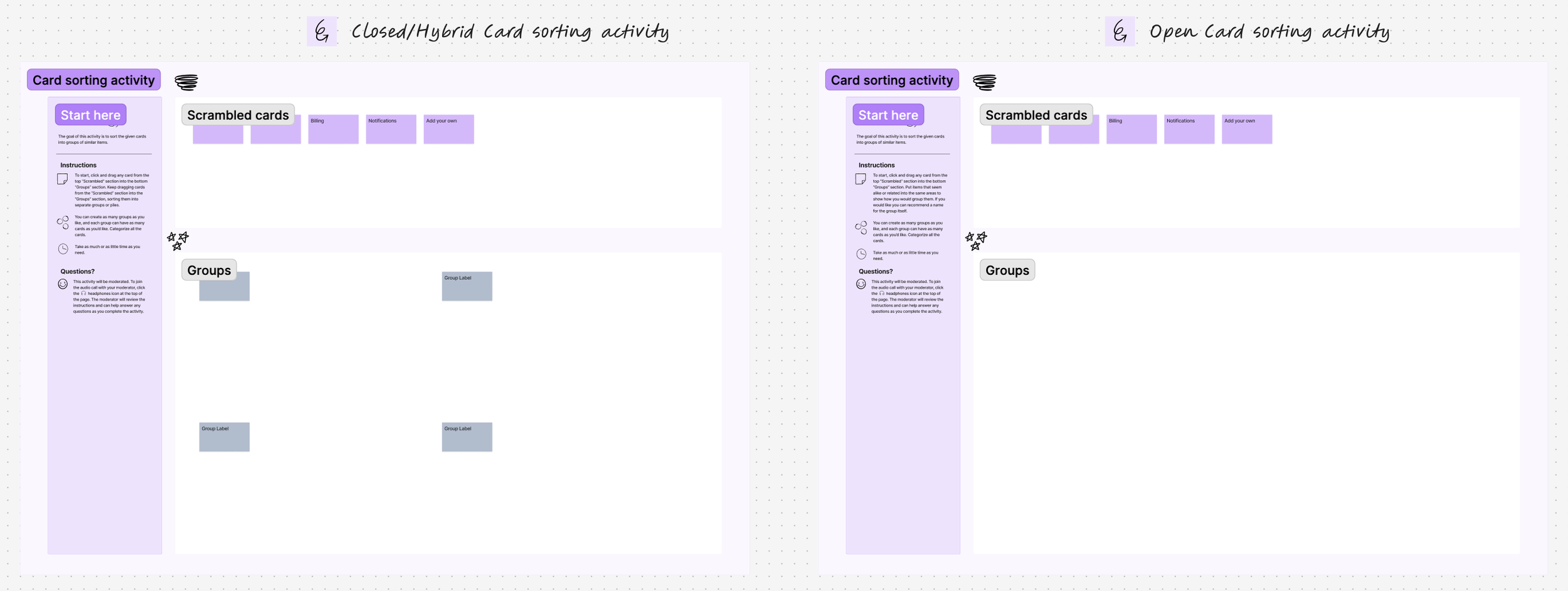 FigJam files that can be duplicated and used to execute various study methodologies.